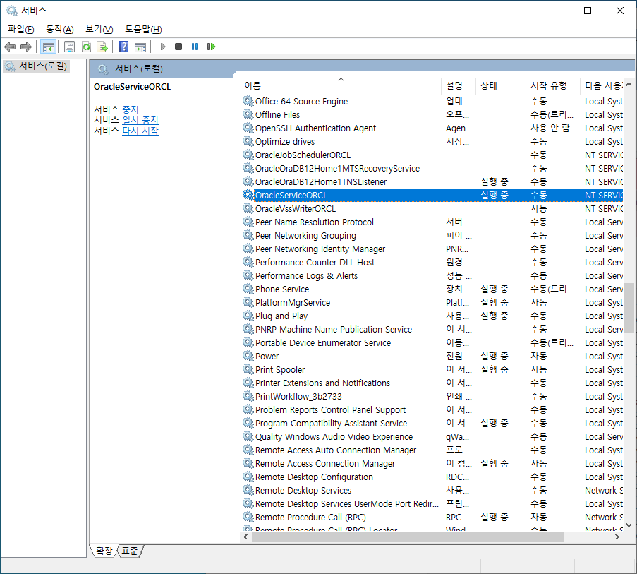 서비스 - OracleServiceORCL, OracleOraDB12Home1TNSListener 실행시키면 해결