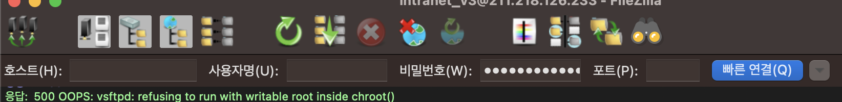 chroot 환경 내에서 쓰기 가능한 루트(root) 디렉터리를 거부한다는 오류다.