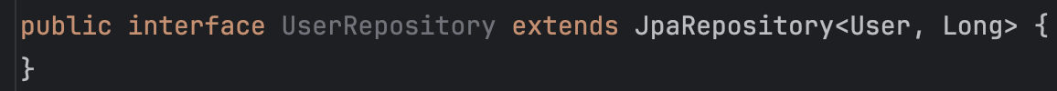 JpaRepository를 확장하며, Long 타입의 키값을 갖는 User 엔티티임을 명시합니다.