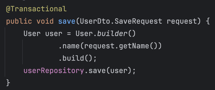 UserRepository에 엔티티를 전달하여 저장합니다.
