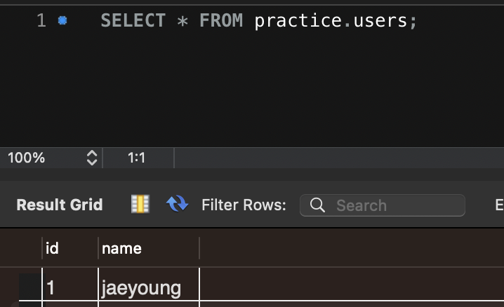 Postman으로 요청하고, MySQLWorkbench로 user가 정상적으로 저장된걸 확인합니다.