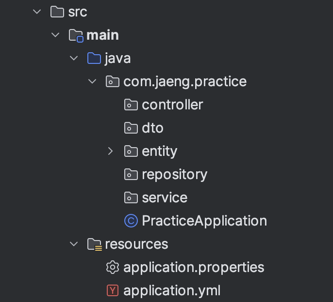 레이어드 아키텍처를 구현하기 위한 구조로 패키지를 분리합니다.
